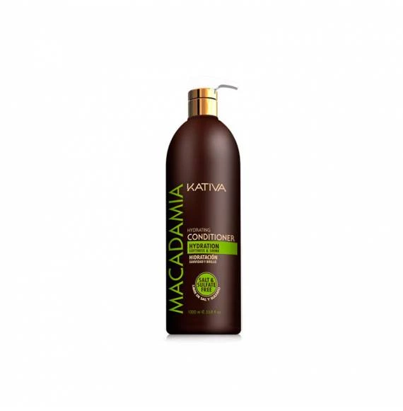 Acondicionador Macadamia de la marca Kativa hidrata, suaviza, aporta brillo y desenreda el cabello. Recomendado para pelo seco y deshidratado desde la raíz. Es un acondicionador hidrante formulado sin sal, sulfatos, parabenos o gluten. Ayuda a prolongar los efectos de la keratina en el pelo. Cruelty Free, no testado en animales. Elaborado con un 91% de ingredientes naturales. Formato de 1000 ml.
