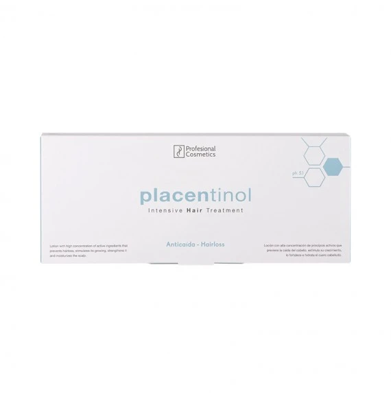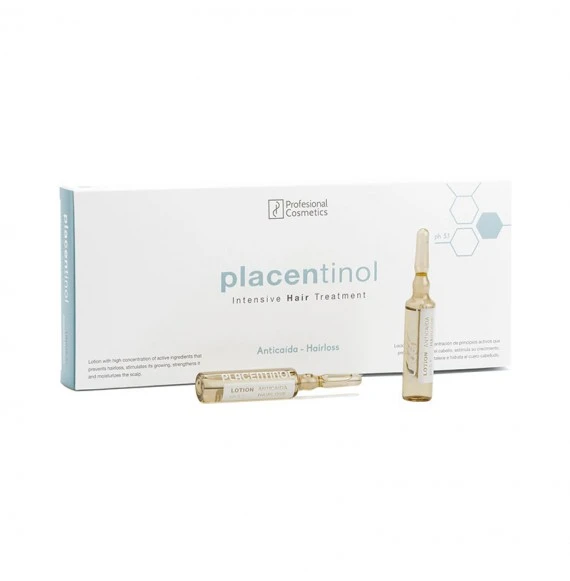 Placentinol Loción Anticaída del laboratorio Profesional Cosmetics es un tratamiento innovador que previene y frena la caída del cabello. Elaborado con proteínas de la leche, DL-etilpantinteol, Inositol y Aminoácidos azufrados. Contiene 12 ampollas de 10ml.
