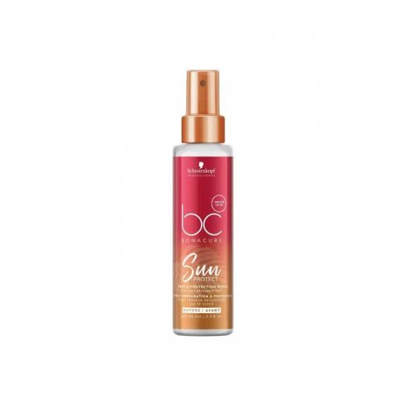 BC Sun Protect de Schwarzkopf Professionals es un dúo formado por el Champú y Protector Solar para cabello BC Sun Protect. El pack perfecto para proteger tu cabello del sol y reavivarlo después de su exposición al sol, a la arena, al salitre del mar y al cloro de la piscina. Formulado con Aceite de Buriti y extracto de Algas Marinas. Protege el color del cabello.