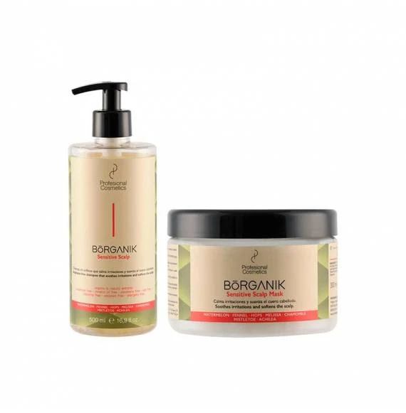 Borganik Sensitive de Professional Cosmetics es un pack indicado para cueros cabelludos sensibles e irritados. Fórmula elaborada con ingredientes naturales como la sandía, el lúpulo, la melisa o la achillea. Sin sulfatos, sin parabenos, sin siliconas, sin sales, sin alérgenos, sin aceites minerales ni colorantes. La línea Borganik es apta para el Método Curly. El pack incluye: champú Borganik Sensitive 500 ml y mascarilla Sensitive 300 ml.