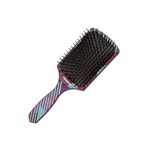 El cepillo Termix de Raqueta con print retro en Lila es un cepillo profesional con púas flexibles que desenreda el cabello en seco o en mojado a la perfección sin romperlo o dañarlo, además, el acabado redondeado de sus púas de nylon masajean el cuero cabelludo a medida que se cepilla el cabello, facilitando así el crecimiento del pelo.