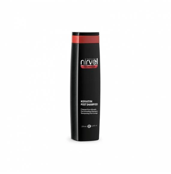Keratin Post Shampoo Nirvel es un champú con queratina sin sulfatos que hidrata y reestructura el cabello. Disponible en dos tamaños.