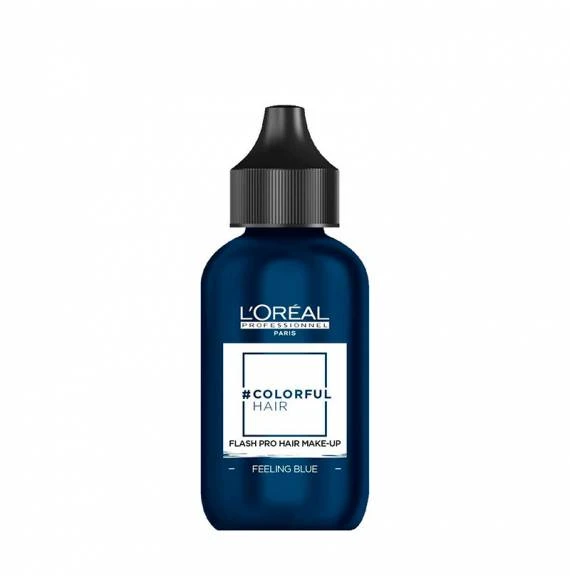 ColorfulHair Flash Feeling Blue de L’Oréal Professionnel es un maquillaje para el pelo en color azul para un look express atrevido y original. Elige tu color fantasía entre los 11 tonos de la paleta ColorfulHair Flash sin compromiso ya que el maquillaje capilar desaparece completamente del cabello en un solo lavado. Formato de 60 ml.