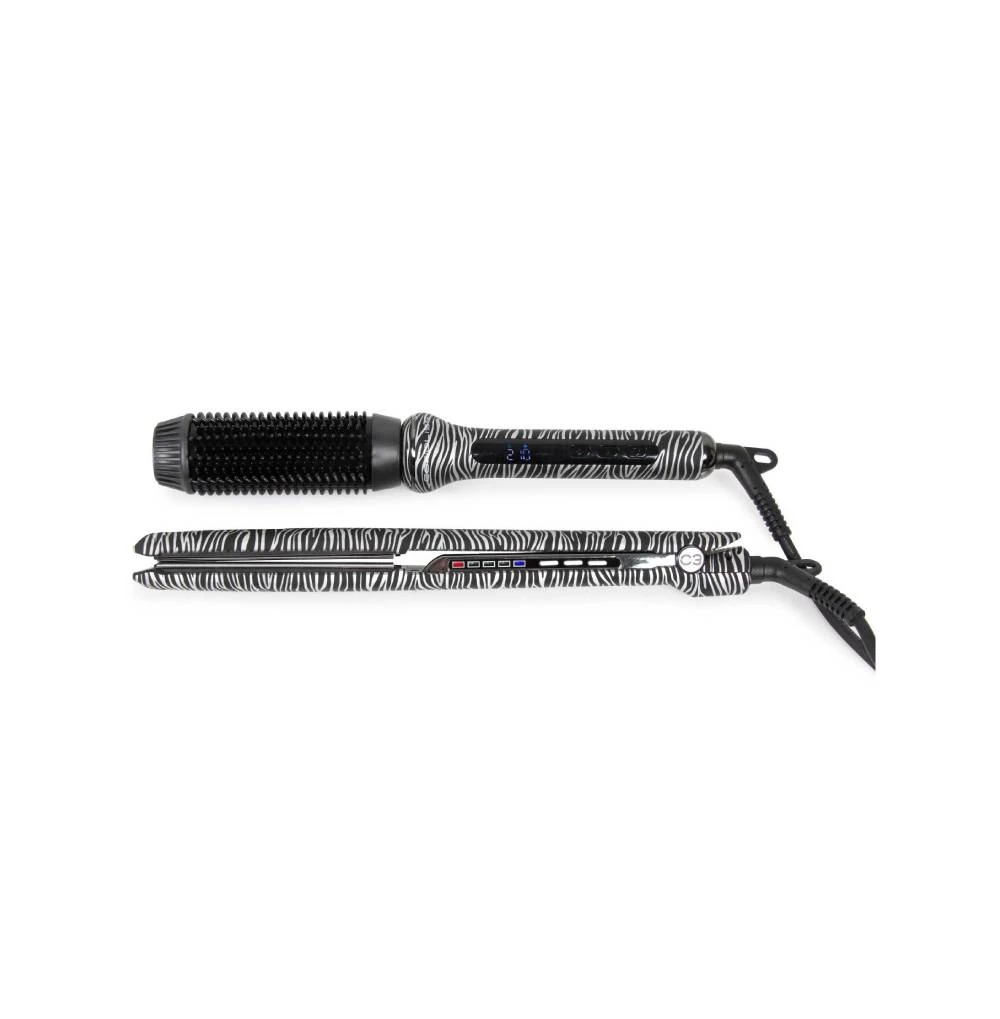 Descubre la combinación perfecta de estilo y tecnología con el Kit Corioliss Silver Zebra, que incluye la plancha profesional C3 y el cepillo eléctrico Hot Brush. Este set de diseño exclusivo con print plateado zebra te permite crear peinados impecables, desde alisados elegantes hasta ondas llenas de volumen. Ideal para quienes buscan resultados de salón en casa con herramientas de alta calidad y un toque de sofisticación. ¡Atrévete a transformar tu look con este kit único!
