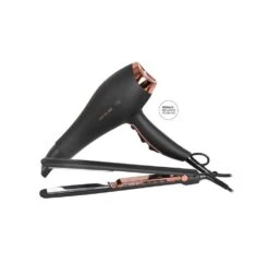 Corioliss Kit Plancha C3 + Secador Flow DC Black Copper: Innovación y estilo en tu rutina capilar. La plancha C3 con placas de titanio y el potente secador de 2200W te ofrecen resultados profesionales en casa. Su acabado en Black Copper le da un toque único y elegante. ¡Hazte con este kit exclusivo y transforma tu look!