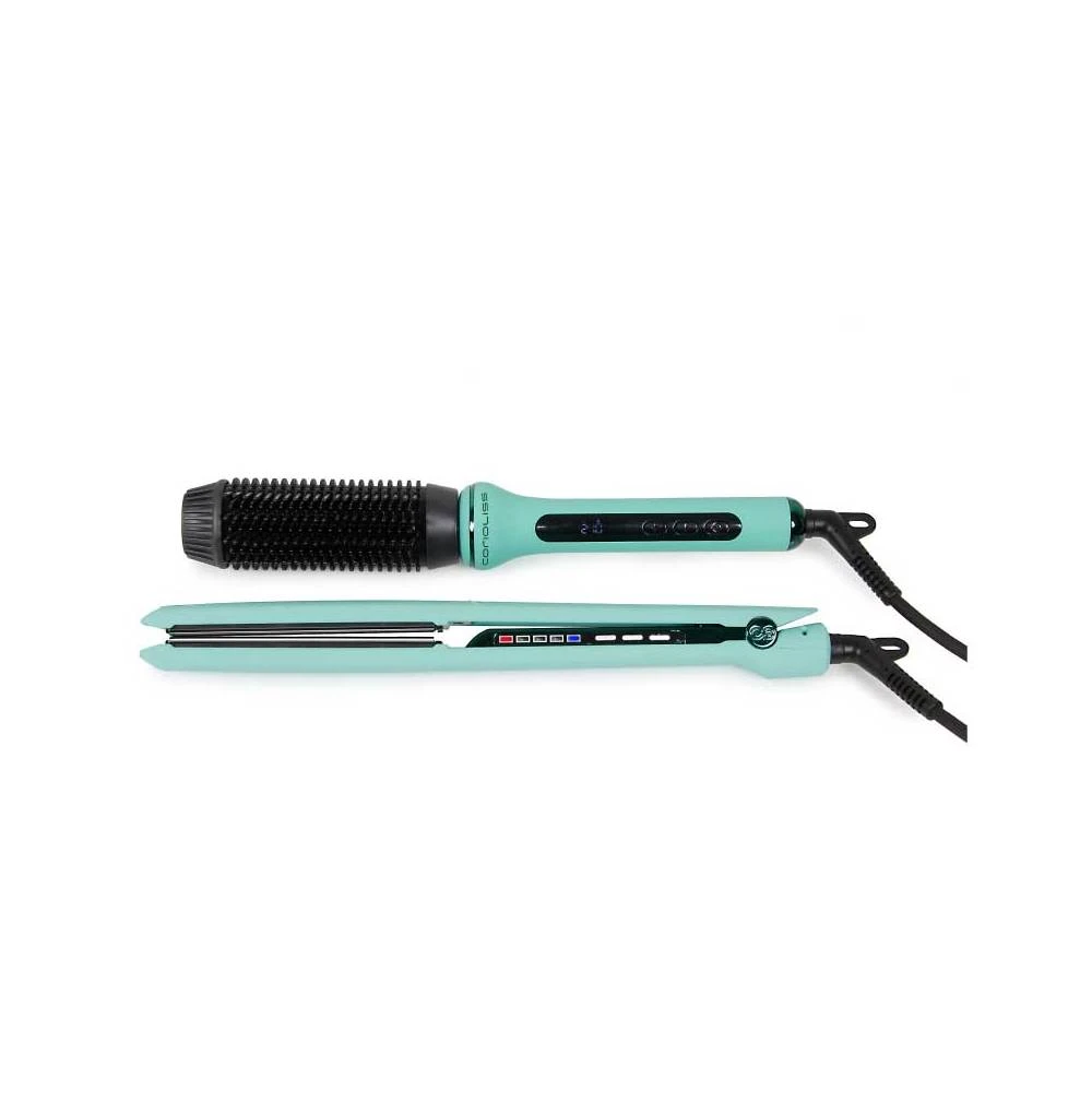 Eleva tu rutina de peinado con el Corioliss Kit C3 + Hot Brush Mint Green Collection. La plancha C3 con placas de titanio extralargas permite un alisado impecable y ondas definidas, mientras que el Hot Brush alisa con rapidez y sin encrespamiento gracias a su tecnología iónica. Un kit profesional para un cabello perfecto cada día. ¡Consíguelo ahora!