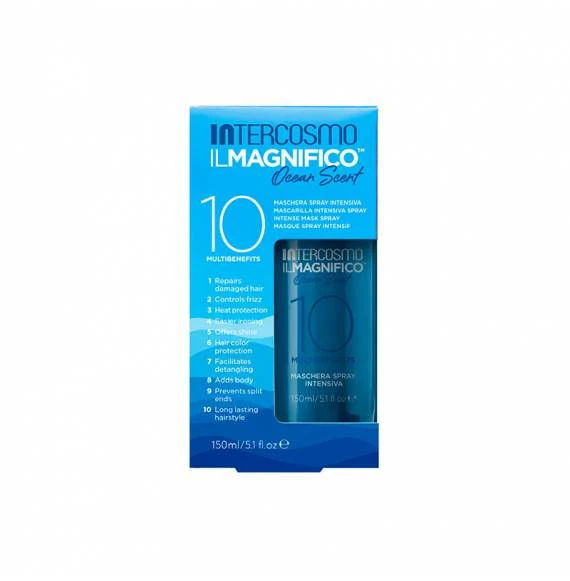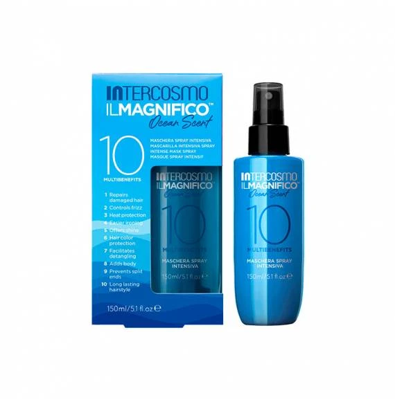 ¡Nuevo aroma! Il Magnífico de Intercosmo Ocean Scent es mascarilla capilar en spray que aporta 10 beneficios al cabello: repara, controla el frizz, protege del calor, protege el color, sella las puntas, aporta brillo… Ideal para todo tipo de cabello. Sin aclarado. Formato de 150 ml.