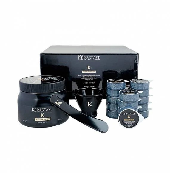 El ritual Chronologiste está formado por la mascarilla Cremé Regeneration en 500 ml y un concentrado de perlas de caviar mimético en 15 monodosis de 8 ml. Este tratamiento profesional regenera y revitaliza el cabello a la vez que lo nutre profundamente. El resultado supone el renacer del cabello: una fibra capilar renovada, fuerte y nutrida y un cabello suave, flexible y brillante.