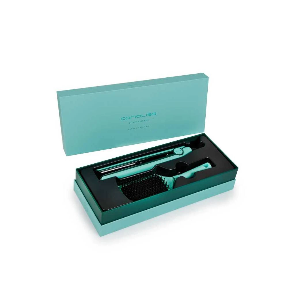 KIT CORIOLISS PLANCHA DE PELO C1 + CEPILLO PADDLE MINT GREEN COLLECTION