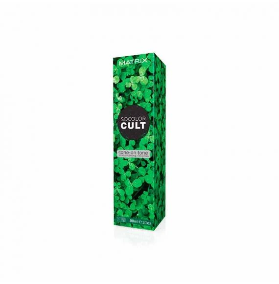 Matrix SoColor Cult color Clover Green es una coloración de fantasía verde con un tono más intenso, duradero y brillante gracias a su mayor proporción de pigmento violeta. Además puedes mezclar Clover Green con otros colores SoColor Cult de la misma tecnología para que obtengas una coloración de fantasía única. Este color de SoColor Cult tiene dos tecnologías de aplicación: direct/semi y tono sobre tono/demi. Selecciona a continuación la tecnología que prefieras de este color según la duración que desees para tu coloración. ¡Atrévete a experimentar con tu cabello!
