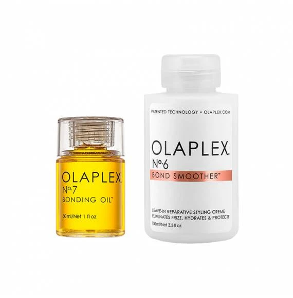 Olaplex dúo formado por los últimos lanzamientos de la marca: Olaplex No 6 Bond Smoother y Olaplex 7 Bonding Oil. Olaplex 6 es un tratamiento sin aclarado que reduce el encrespamiento, aporta brillo, fortalece y suaviza. Por su parte, el paso 7 es un aceite liviano y altamente concentrado que aporta brillo y protección térmica. Aplicando los dos productos a la vez el resultado es realmente increíble: pelo sano, reparado, suave, sin encrespamiento, luminoso y protegido frente a las herramientas de calor. Ideal para todo tipo de cabellos: naturales, teñidos y decolorados. Sin sulfatos, parabenos y gluten. Cruelty Free.