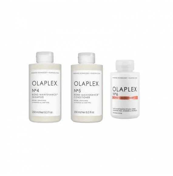 Kit Olaplex formado por los pasos No 4, 5 y 6 de la marca. Olaplex 4 y 5 son el champú y acondicionador de la marca, respectivamente. Olaplex 6 es un tratamiento sin aclarado que reduce el encrespamiento, aporta brillo, fortalece y repara. El kit perfecto para mantener tu cabello sano, brillante y manejable. Ideal para todo tipo de cabellos: naturales, teñidos y decolorados. Sin sulfatos, parabenos y gluten. Cruelty Free.