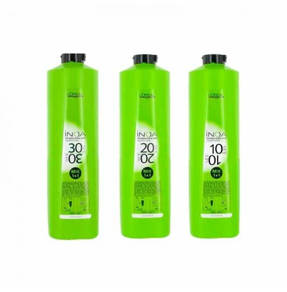 Oxidante INOA L’Oréal Professionnel para los tintes de la línea INOA únicamente ya que ambos son sin amoníaco. Disponibles en 3 volúmenes: 10 Vol, 20 Vol y 30 Vol. Formato de 1 litro.