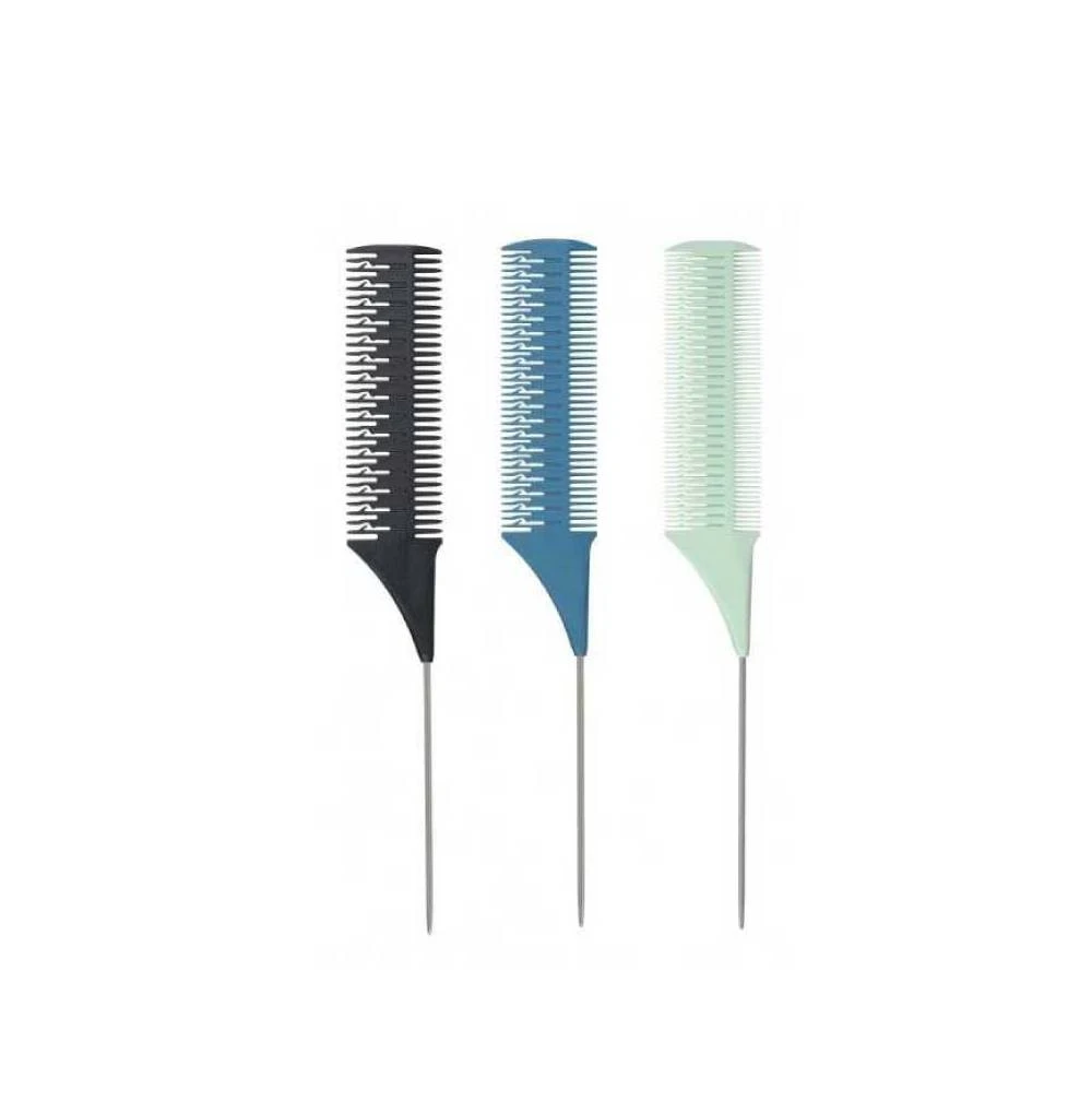 El Set de 3 Peines para Mechas y Balayage Sibel Weaver está diseñado para profesionales y usuarios exigentes que buscan precisión en la creación de mechas o reflejos. Incluye tres tamaños (pequeño, mediano y grande) con cola metálica de acero inoxidable y púas dentadas para un manejo eficiente, ideal para trabajos de coloración de alta calidad.