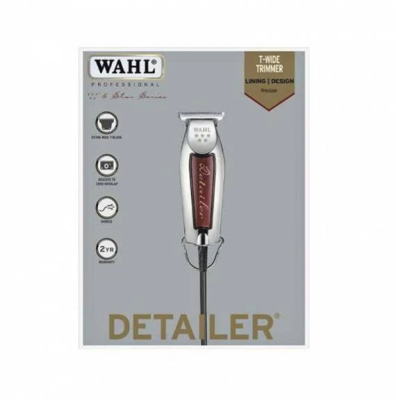 Máquina cortapelos para retoques Wahl Detailer, el retocador profesional más vendido. Dispone de un motor rotativo muy potente, diseño ergonómico e incluye una cuchilla de alta precisión, la Wahl T-Blade, que es ajustable manualmente al 0. Ancho de corte de 38 mm y alto de 0,4 mm. Dubal Cosmetics es distribuidor oficial de la marca.